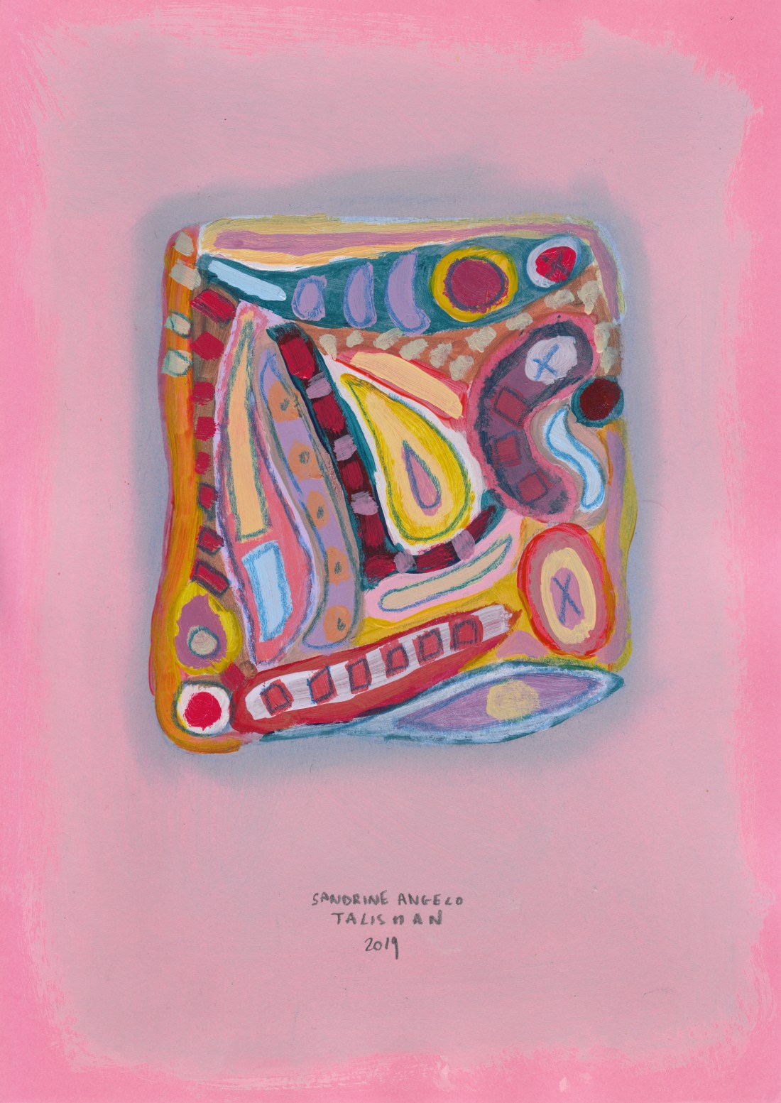 “Talisman”, Little things A4, acrylic on paper, Sandrine Angelo, 2019